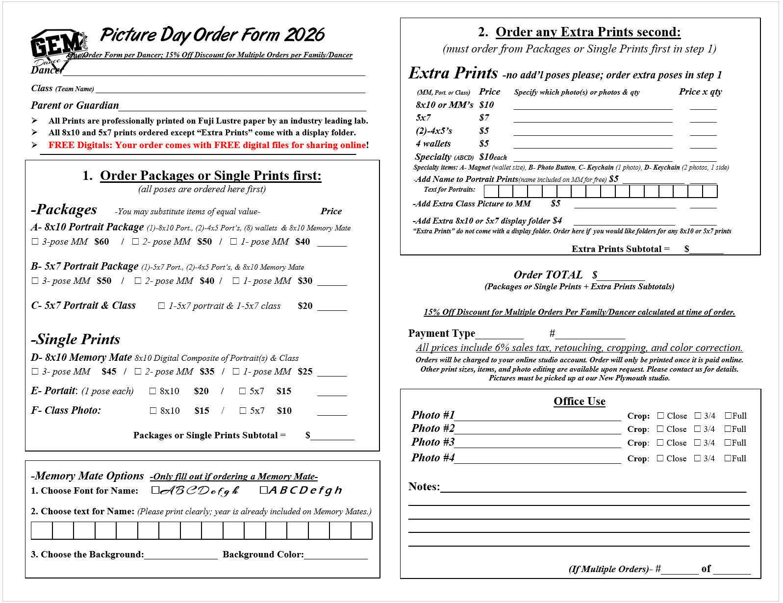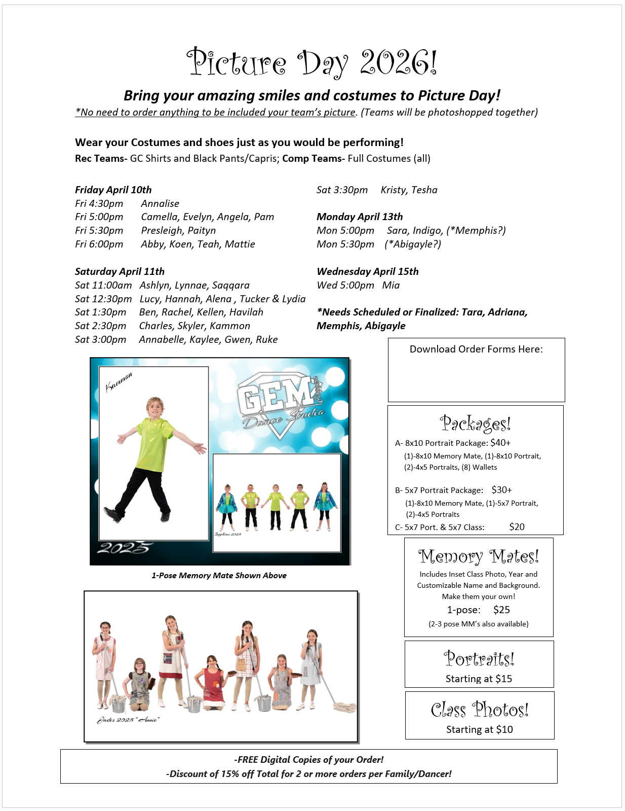 *Order Forms can be found by Clicking Here. You do not need to order to be in the Team Picture. Any orders come with FREE digitals of each print ordered.